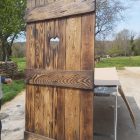 Bellissima porta in stile rustico in legno di abete, spessore 4.8 cm. Le tavole hanno bordi leggermente irregolari quindi può esserci della “luce” tra le tavole. Le tavole sono lavorate a mano per donare loro un look vissuto, hanno quindi graffi, fori ecc. Se invece preferite un look meno vissuto ma più adatto ad un arredamento moderno / industrial ecc… basta dirlo, e la faremo come preferite. La porta non ha diagonali ma le tre trasversali sono più larghe del solito. Il prezzo si intende per porte fino a 210×90. L’eventuale cuore incavato a mano costa 20euro.