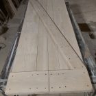 Porta in stile western in abete, ma invece che essere scorrevole va incernierata sul muro (possiamo fornire i cardini su richiesta) e si apre/chiude “a libro”. Può essere rifinita con le varie finiture che vedete nelle foto delle altre porte.
